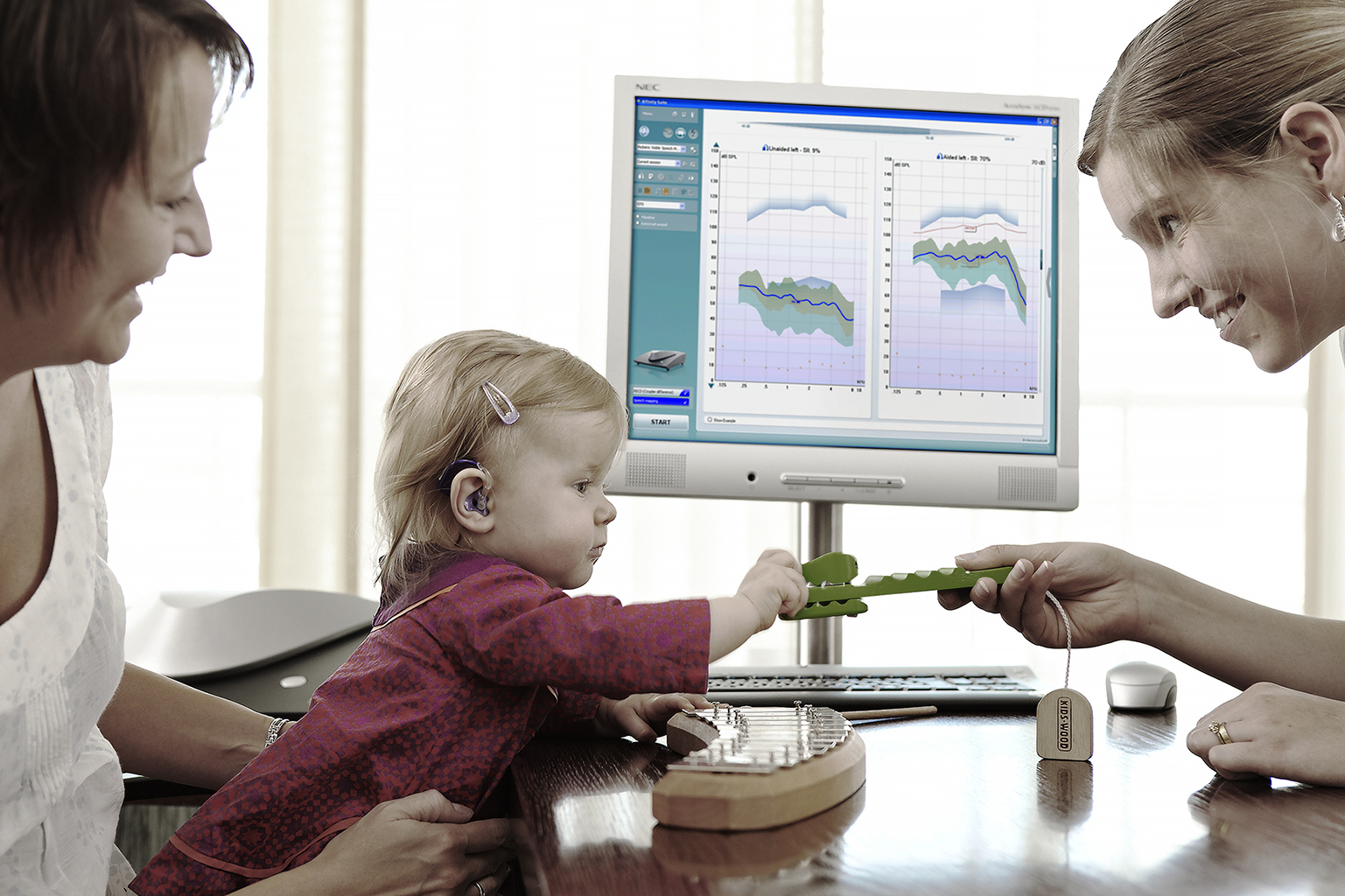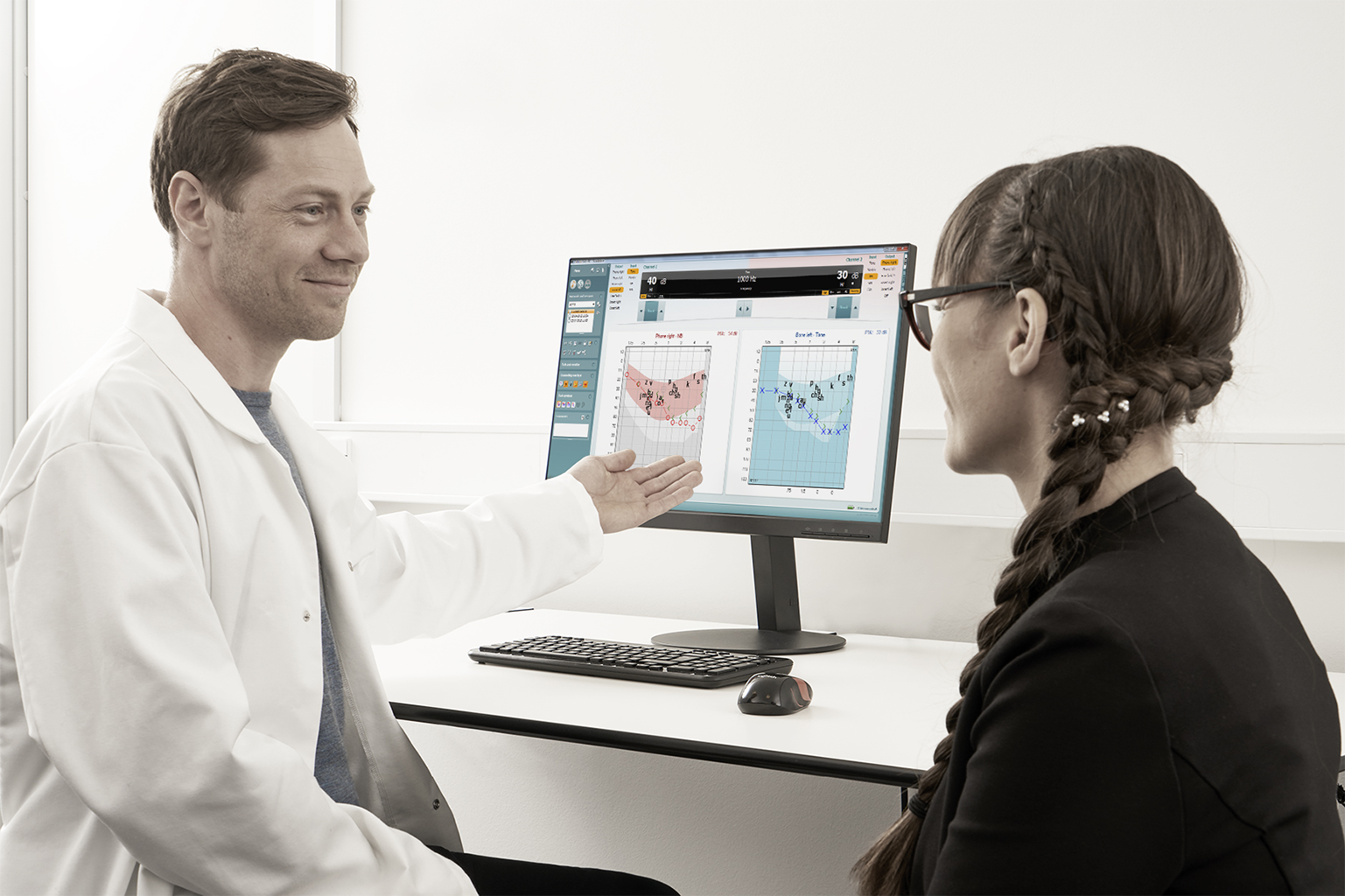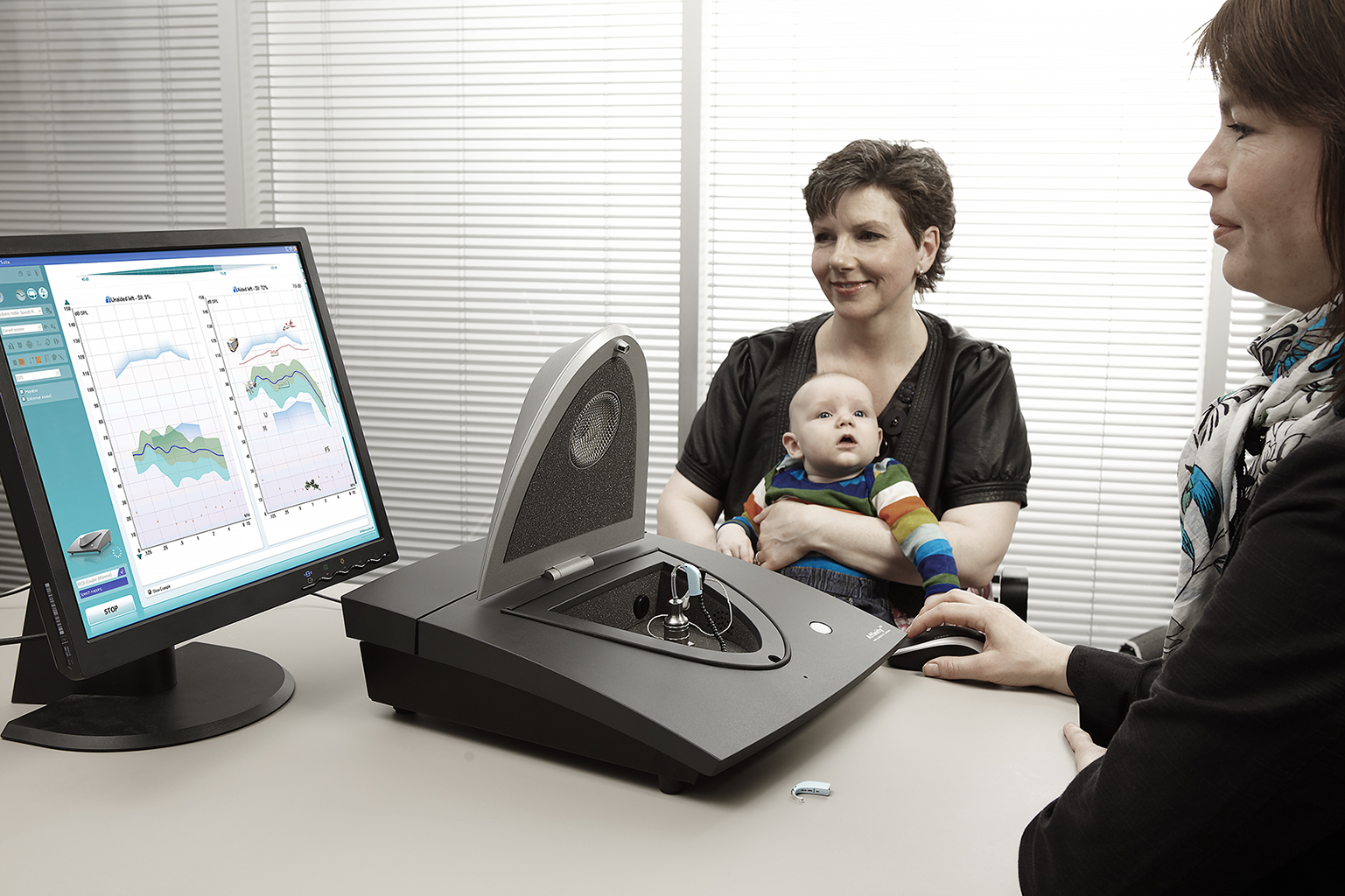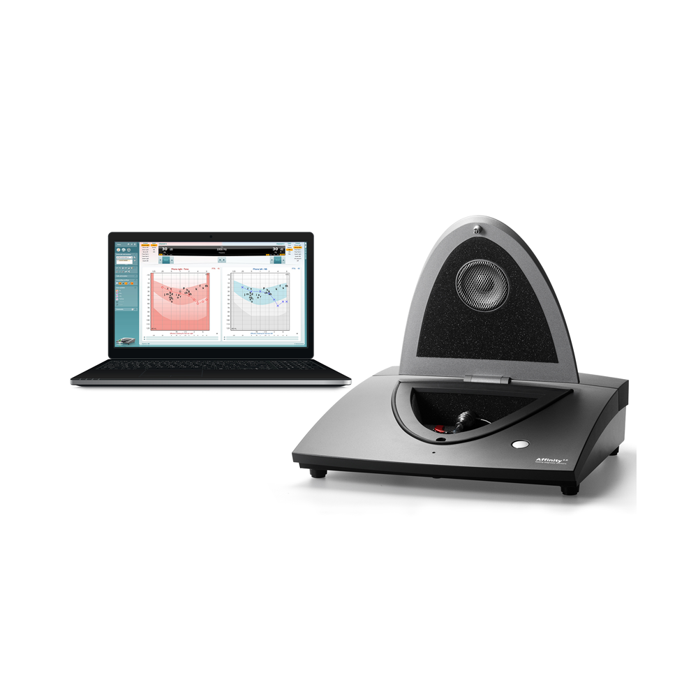 Affinity 2.0 je multifunkcijska naprava za prilagajanje slušnih aparatov. Omogoča avdiometrijo, merjenje v pravem ušesu (REM), vidno kartiranje govora (VSM) in testiranje slušnih aparatov (HIT). Pomagajte svojim strankam na njihovi poti do slišnosti.