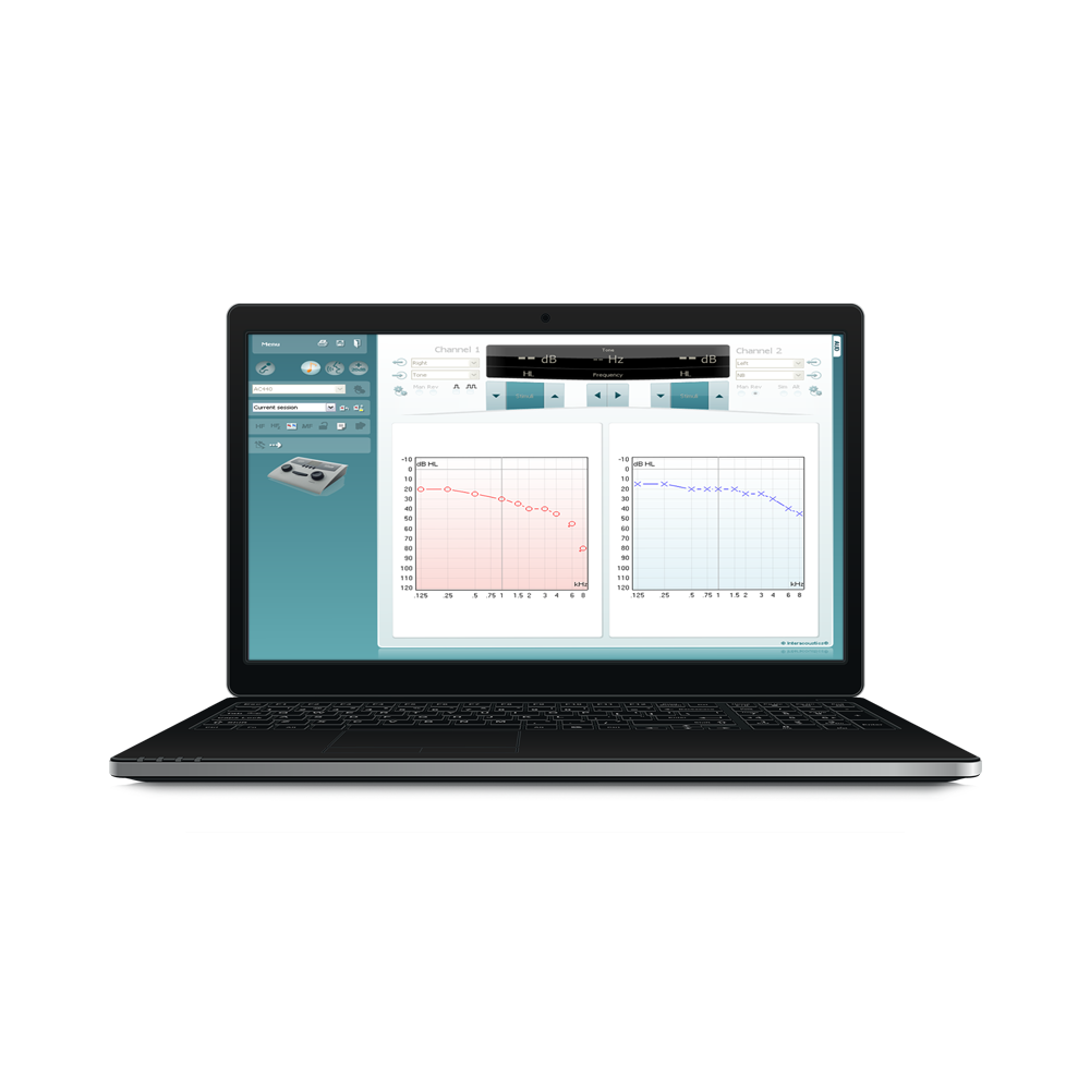 Prenosni avdiometer, namenjen šolam, industriji in osnovnim zdravstvenim ustanovam ali kjerkoli se izvajajo hitre presejalne ocene sluha.