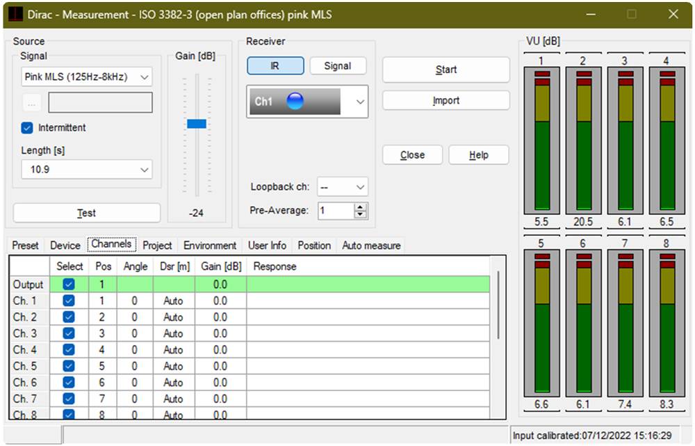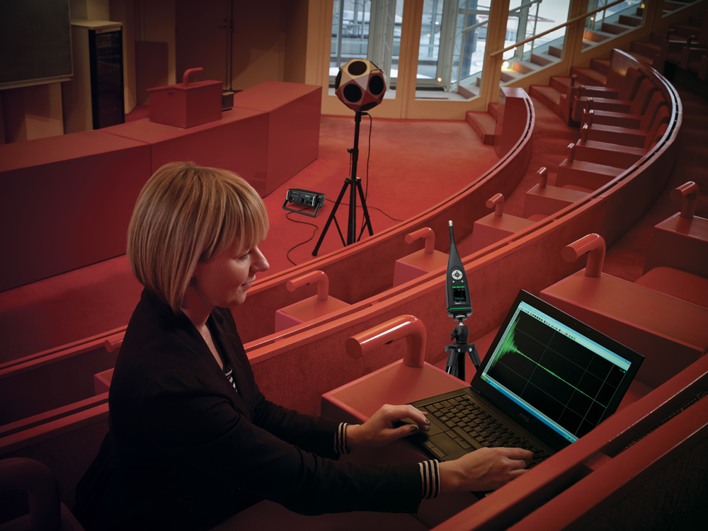 • meritve, skladne s standardi ISO 3382 (akustika prostora), ISO 18233 (metode analize) in IEC 60268-16 (razumljivost govora)